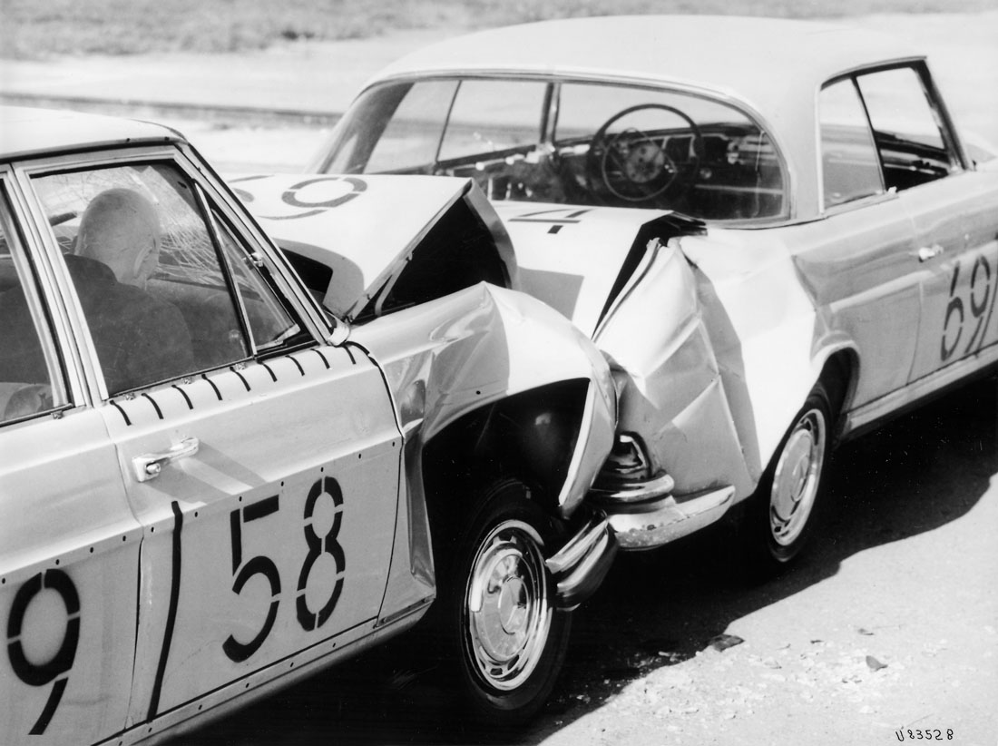 Seit 60 Jahren lsst es Mercedes-Benz richtig krachen: Am 10. September 1959 findet der erste Crashtest in der Geschichte der Marke statt. Ein Versuchswagen prallt frontal gegen ein festes Hindernis. Damit beginnt fr die Sicherheitsforschung eine neue ra.