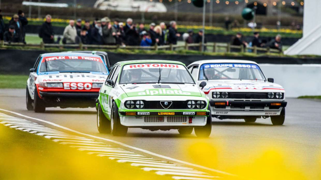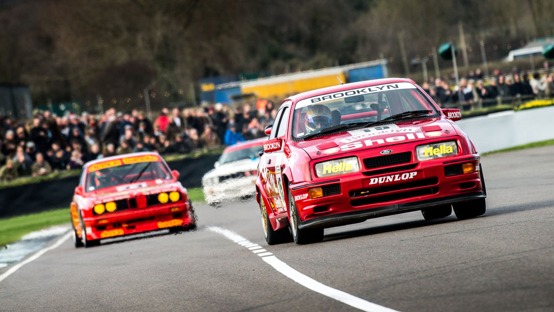 Tourenwagenrennen sind schon lange zentraler Bestandteil in Goodwood. Sowohl historisch betrachtet als auch seit der Wiedereröffnung 1998. In diesem Jahr würdigte das Members’ Meeting die lang vermisste Gruppe-A-Kategorie, die ihre Blütezeit in den 1980er Jahren hatte. Eine große Auswahl an Autos, die in dieser Zeitspanne miteinander konkurrierten wurden übers Wochenende zur Rennstrecke auf den Kurs gebracht, vom Noblen (Jaguar XJ-S) bis hin zum leicht Seltsamen (der ultraschnelle Volvo 240 Turbo „fliegender Ziegelstein“) über den Rover SD1 Vitesse, BMW M3 und Sierra RS500. Nicht nur das, auch 80er Jahre Helden wie Steve Soper und Roberto Ravaglia saßen hier hinterm Steuer.