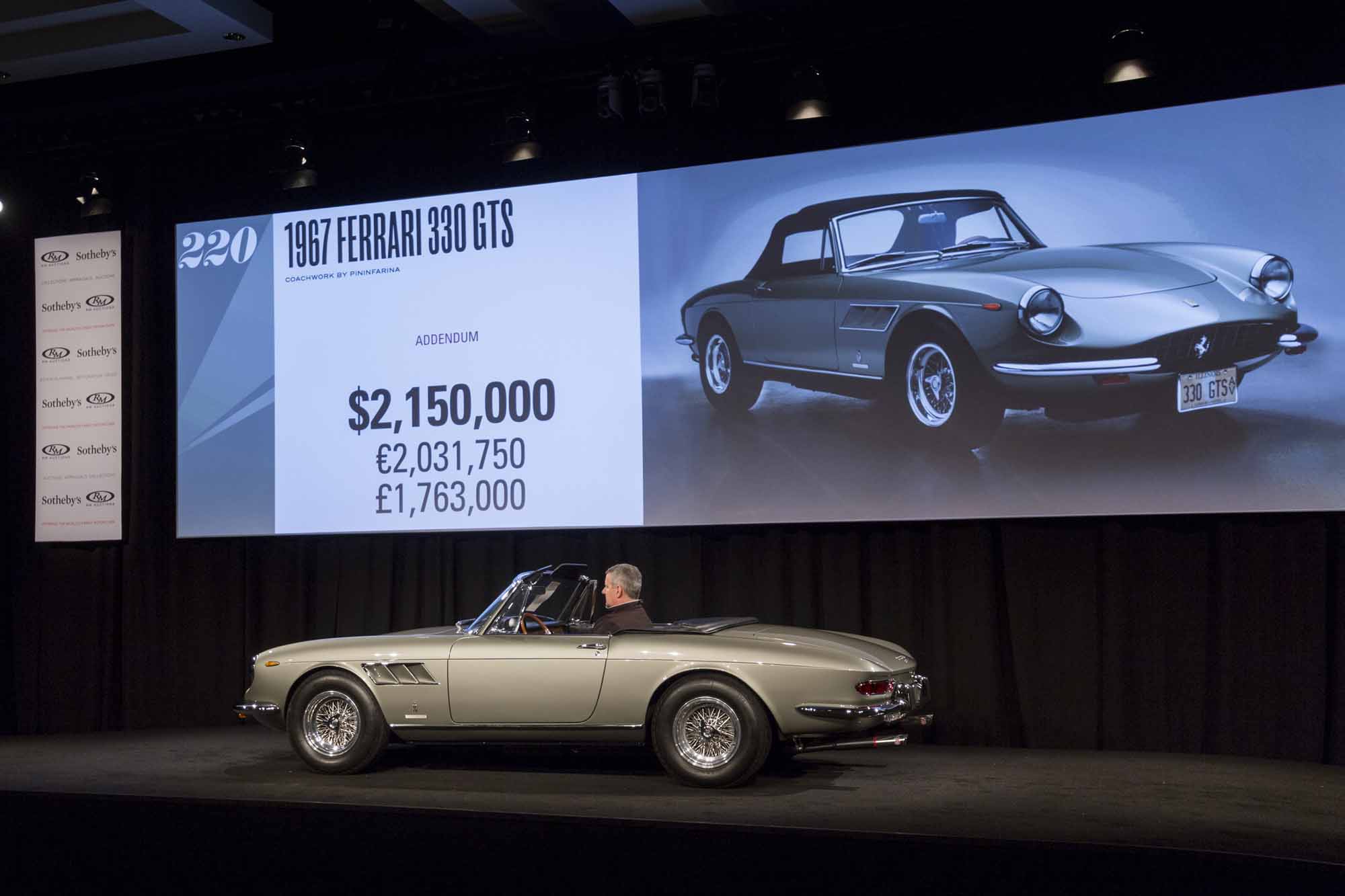 | 6 | 1967 | Ferrari 330 GTS | 2,475,000 |
