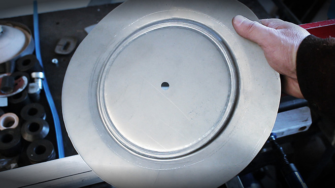 Kreisförmige Sicken, wie sie in Abdeckungen, Radkappen oder Zierteilen zu finden sind, lassen sich sehr einfach mit der Sickenrollmaschine und einer kleinen zusätzlichen Vorrichtung formen.