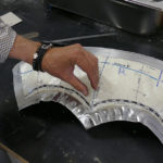 Die Schablone wird nun auf das Blech gelegt und der Rand der Schablone nachgezogen und bertragen. Rund um den Rand werden durchgehend noch ca. 2cm zugegeben, denn das Blech wird dich noch whrend der Umformarbeiten durch entsprechendes Stauchen und Strecken verndern.