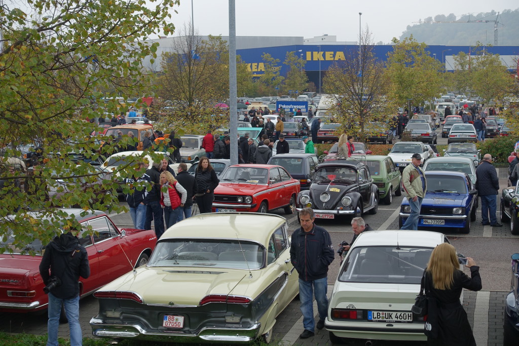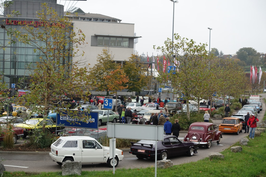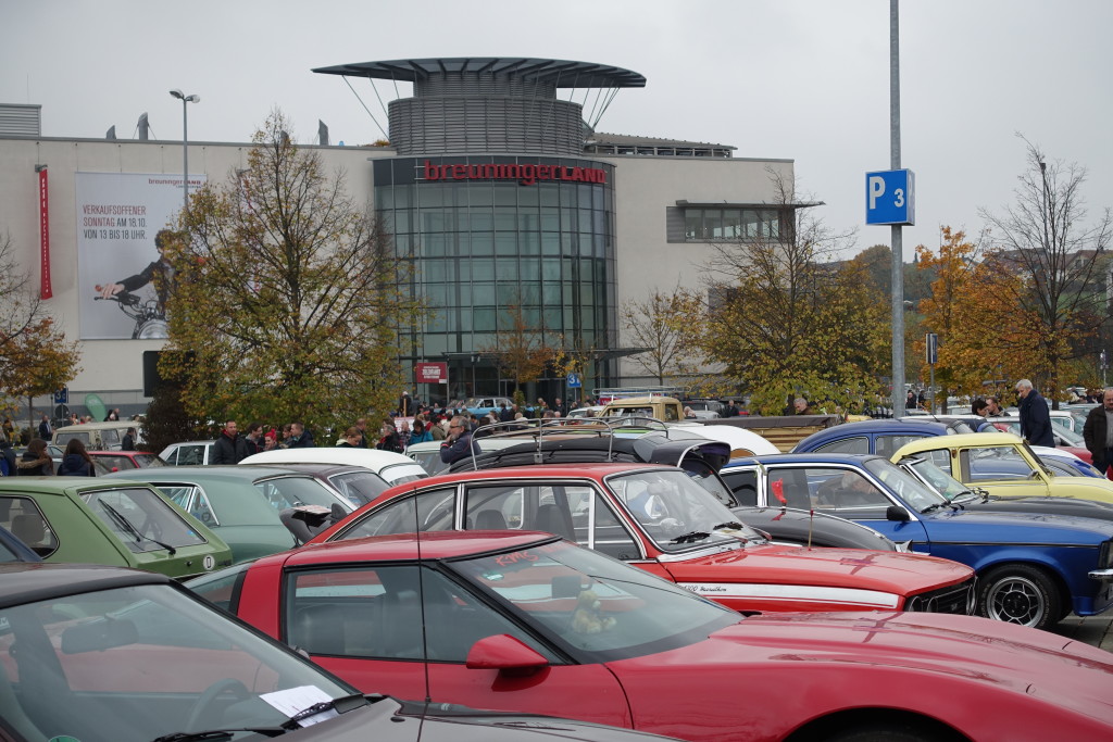 Immer zum Saisonauftakt und als Saisonabschluß treffen sich Oldtimerfahrer und Fans klassischer Automobile beim breuningerLand. Die 20. RETRO Veranstaltung am breuningerLand war nun der Saisonabschluss. Auch bei kühlen aber trockenen herbstlichen Temperaturen von fünf Grad kamen zur Jubiläumsveranstaltung weit mehr Fahrzeuge als erwartet. Viele Cabrio-Fahrer trotzten den Temperaturen und kamen mit Ihren offenen Fahrzeugen um mit Gleichgesinnten den verkaufsoffenen Sonntag für eine kurze Shopping-Tour zu nutzen.