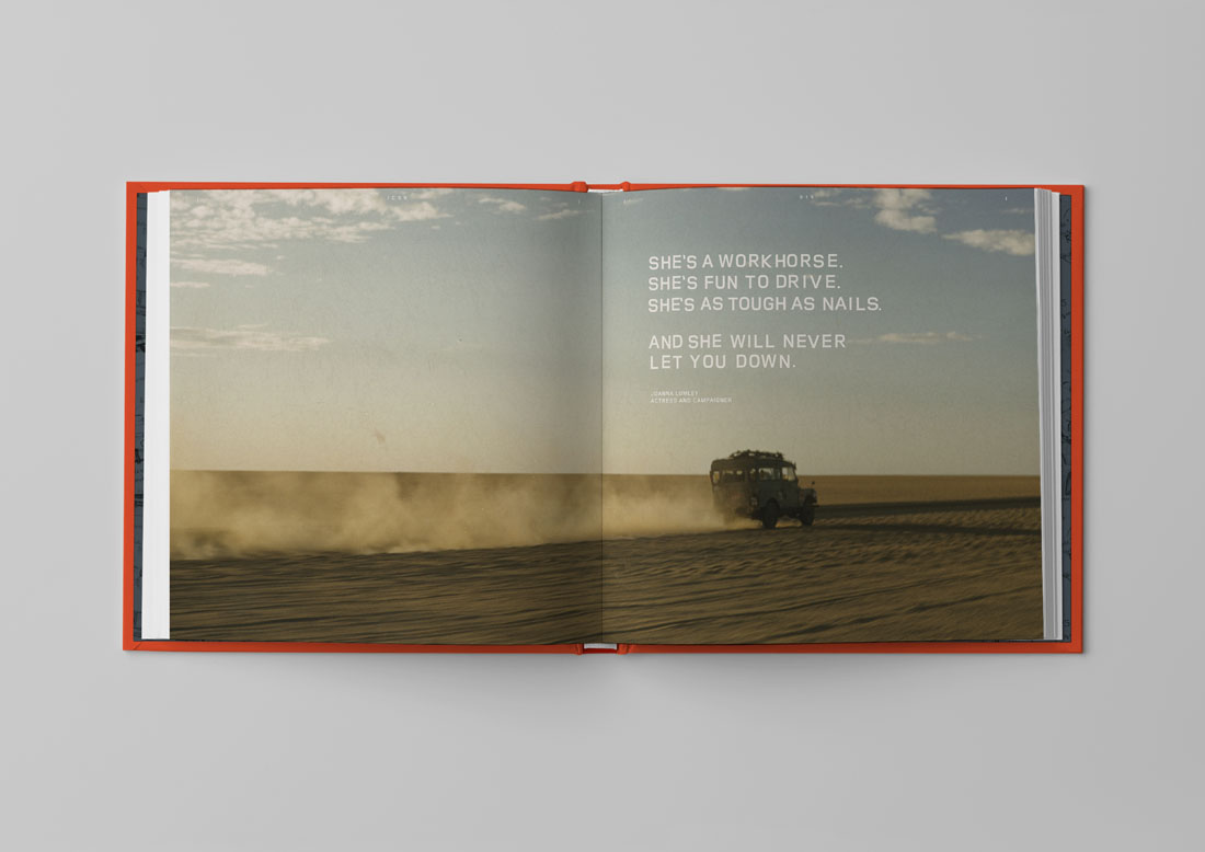 Das Hardcover-Buch vermittelt mithilfe von Archivbildern und Interviews mit Mitarbeitern, Kunden und Führungskräften den Geist der Marke. Gezeigt werden auch die legendären Expeditionen, humanitären Projekte und Abenteuer, die Land Rovers und den Menschen, die sie zum Leben erweckt haben, unternommen wurden.