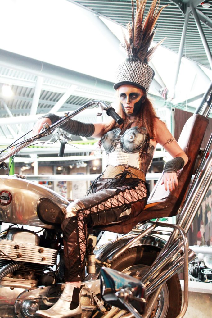 ZU Keep Calm and STEAM Ahead gehörte auch eine Sammlung von Steampunk-Kostümen, gefertigt von Kunststudenten der Universität Bournemouth. Jedes Kostüm wurde von einem der historischen Fahrzeuge inspiriert und die Studenten nutzten die reichen Quellen der Motoring Reference Library, um ihr Designzu entwickeln.
