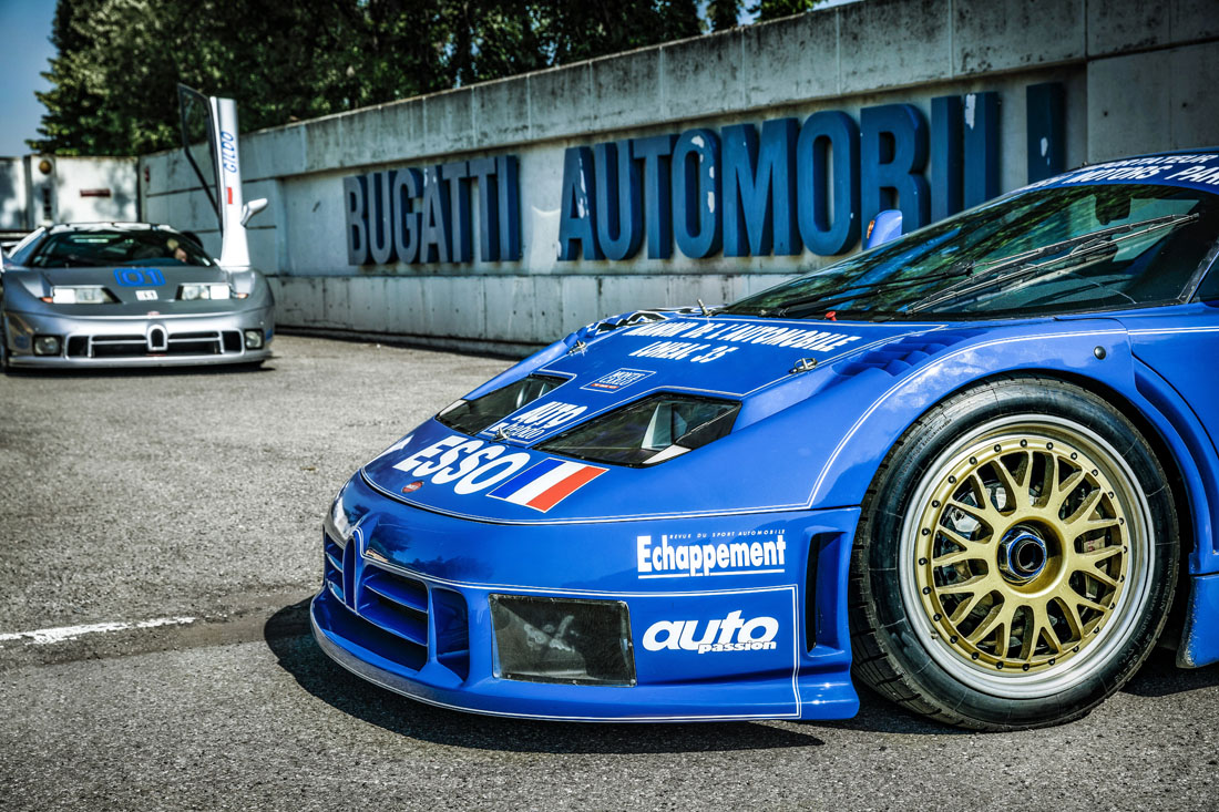 Obwohl der EB110 in Handarbeit in Campogalliano entsteht, feiert Bugatti sein erstes Neufahrzeug am 15. September 1991 in Frankreich am 110. Geburtstag Ettore Bugattis. Zur Präsentation in Paris kommen rund 2.000 geladene Gäste, drei EB110 fahren über den Champs-Élysées. Die ersten Bestellungen für den Supersportwagen gehen ein es sieht gut aus. Bugatti bietet den EB110 in den Modellvarianten EB110 GT (Gran Turismo) sowie wenig später die leichtere und stärkere Variante EB110 S (Supersport, später SS). Mit dem EB110 stellt Bugatti vier Weltrekorde auf, unter anderem den für die schnellste Beschleunigung, den schnellsten Seriensportwagen, schnellster Sportwagen mit Gas betrieben und schnellstes Serienauto auf Eis.