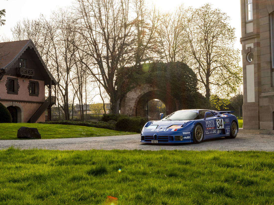 Das alles war Anfang der 1990er-Jahre eine Sensation. Einen V12 mit vier Turbos mit Ladeluftkühlung, Allrad und zwei Differenzialen gibt es sonst nicht. Der EB110 fährt in einer neuen Liga, ist eine epochale Entwicklung und der Konkurrenz um Dekaden voraus. Die Kombination aus Carbon-Monocoque, Allradantrieb und vier Turboladern wird zur DNA moderner Bugatti-Hypersportwagen. Von 0 auf 100 km/h sprintet der EB110 in bis zu 3,26 Sekunden und ist damit das schnellste Serienauto seiner Zeit. Die Höchstgeschwindigkeit liegt bei 351 km/h. Weltrekord für einen Seriensportwagen. Auch nach fast 30 Jahren zählt der EB110 zu den schnellsten Autos der Welt. Dabei fährt sich der EB110 dank des Allradantriebs gutmütig und dank des serienmäigen ABS sicher. Bugatti katapultiert sich mit der Neuschöpfung uneinholbar an die Spitze des Automobilbaus. Dort, wo Romano Artioli und Ettore Bugatti die Marke schon immer gesehen haben.