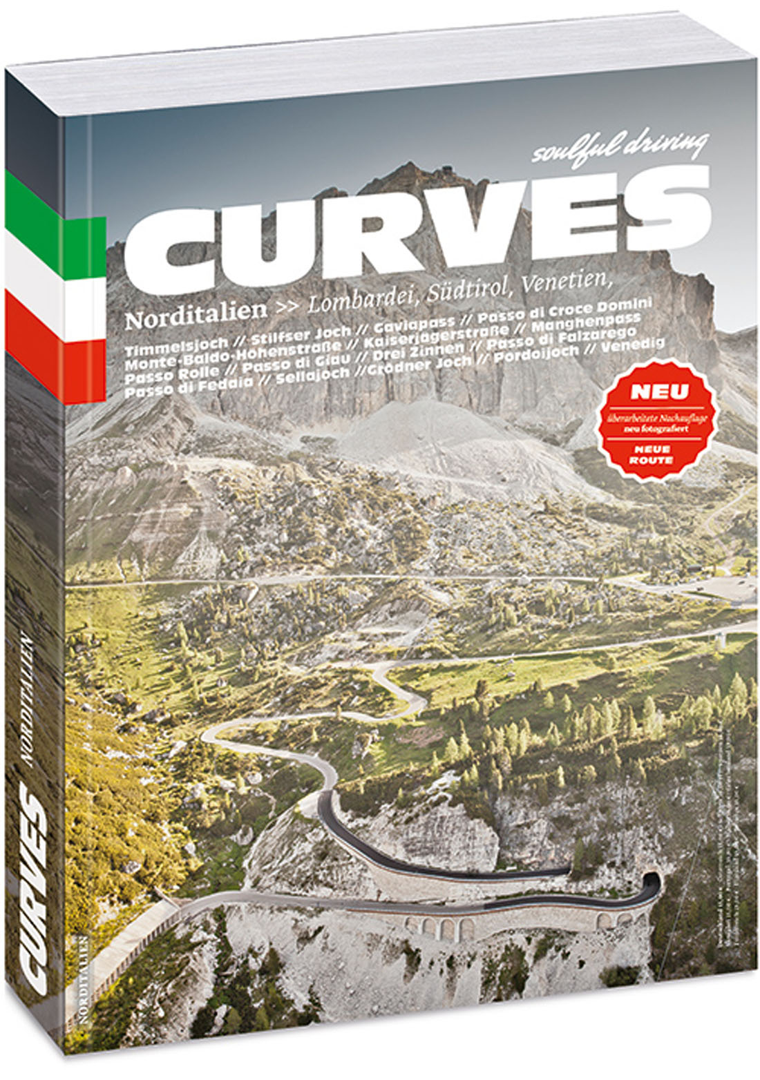 Anhand von fantastischen Fotos wird ein klassisches Roadmovie erzählt, das den Leser an einer 5-tägigen Reise teilhaben lässt. Stefan Bogner, der Mann hinter CURVES, hat das Liebhabermagazin 2011 für Automobil-Enthusiasten, Motorrad-Fans und Radsportler gleichermaßen kreiert. CURVES »Norditalien« wurde nicht nur neu fotografiert und ist auf 256 Seiten angewachsen, der Band ist zudem zweisprachig und mit über 200 großartigen Fotos ausgestattet. Der Weg ist immer noch das Ziel. Und dabei spielt es keine Rolle, ob man mit einem Sportwagen, Oldtimer, dem Motorrad oder im Sattel eines Rennrads durch die einmalige Landschaft fährt, die in der Nachauflage des dritten CURVES-Bandes im Mittelpunkt steht. Es geht weniger um Geschwindigkeit, es geht vielmehr um Fahrgefühl und Fahrspaß. Und das vermittelt CURVES eindrucksvoll in dem überabeiteten und komplett neu fotografierten Band 3 »Norditalien – Lombardei, Südtirol, Venetien«. CURVES »Norditalien« führt über die schönsten Pässe Norditaliens. Von Ponte di Legno geht es über den Passo Gavia und das Stilfserjoch in das Herz der Dolomiten. Zu den besonderen Highlights zählen der Gaviapass, Stilfserjoch, Passo die Manghen, Passo di Giau, die drei Zinnen und die Pässe rund um die »Sella Ronda«. Ziel der Reise ist diesmal Venedig. Die Route wurde auch wieder aus dem Helikopter fotografiert. Neben der neuen Route werden ausgewählte Restaurants und Hotels entlang der Strecke vorgestellt.