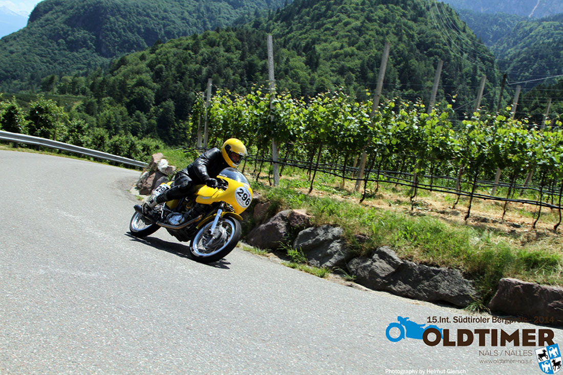 Am Samstag, den 10 Juni, ist um 14.00 Uhr die offizielle Eröffnung der Veranstaltung. Von 14.15 bis 17.00 findet der erste Wertungslauf für die verschiedenen Klassen statt. Auf die fünf Kilometer lange Bergstrecke von Nals nach Sirmian wird in verschiedenen Baujahr- und Leistungsklassen gestartet. Bis zu 14 Prozent Steigung und jede Menge Kurven bietet die anspruchsvolle und aussichtsreiche Strecke. Mit dabei waren in der Vergangenheit unter anderem so faszinierende Maschinen wie eine Harley Davidson JD 1200 von 1927, eine BMW R-57 aus dem Jahr 1928 und MV Agusta, Benelli, Gilera, NSU, DKW, Triumph, Norton, Yamaha oder Honda aus den vergangenen Jahrzehnten. Anschließend treffen sich Fahrer und Motorradbegeisterte zu einem Tiroler Abend im Vereinshaus Nals. Hier kann bei Südtiroler Spezialitäten weiter gefachsimpelt werden.
