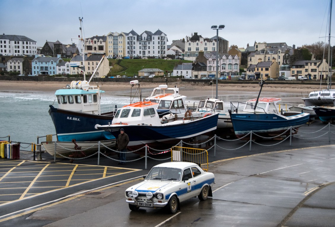 Der erste Rallye-Tag begann mit zwei Geschicklichkeitsprüfungen, an denen sich gleich zu Beginn mehrere Teams die Zähne ausbissen. Beim Marine Drive verloren z.B. Richard Isherwood /Ian Canavan fast eineinhalb Minuten. Aber schon am ersten Tag konnten sich John Abel und Mark Appleton mit ihrem Ford Escort RS2000 an die Spitzenposition setzen.