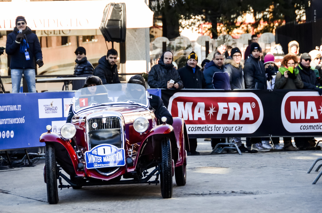 Ein Team aus Brescia auf einem Fiat 508S Baujahr 1932 setzte sich beim Winter Marathon 2016 durch. Franco Spagnoli und Giuseppe Parisi holten sich so den begehrten Pokal der UBI Banco di Brescia. Die 28. Ausgabe des Winter Marathons wurde traditionell auf der Piazza Righi in Madonna di Campiglio beendet. Der Skiort in den italienischen Alpen empfing die Sieger, die durchweg geführt hatten mit leichtem Schneefall.
