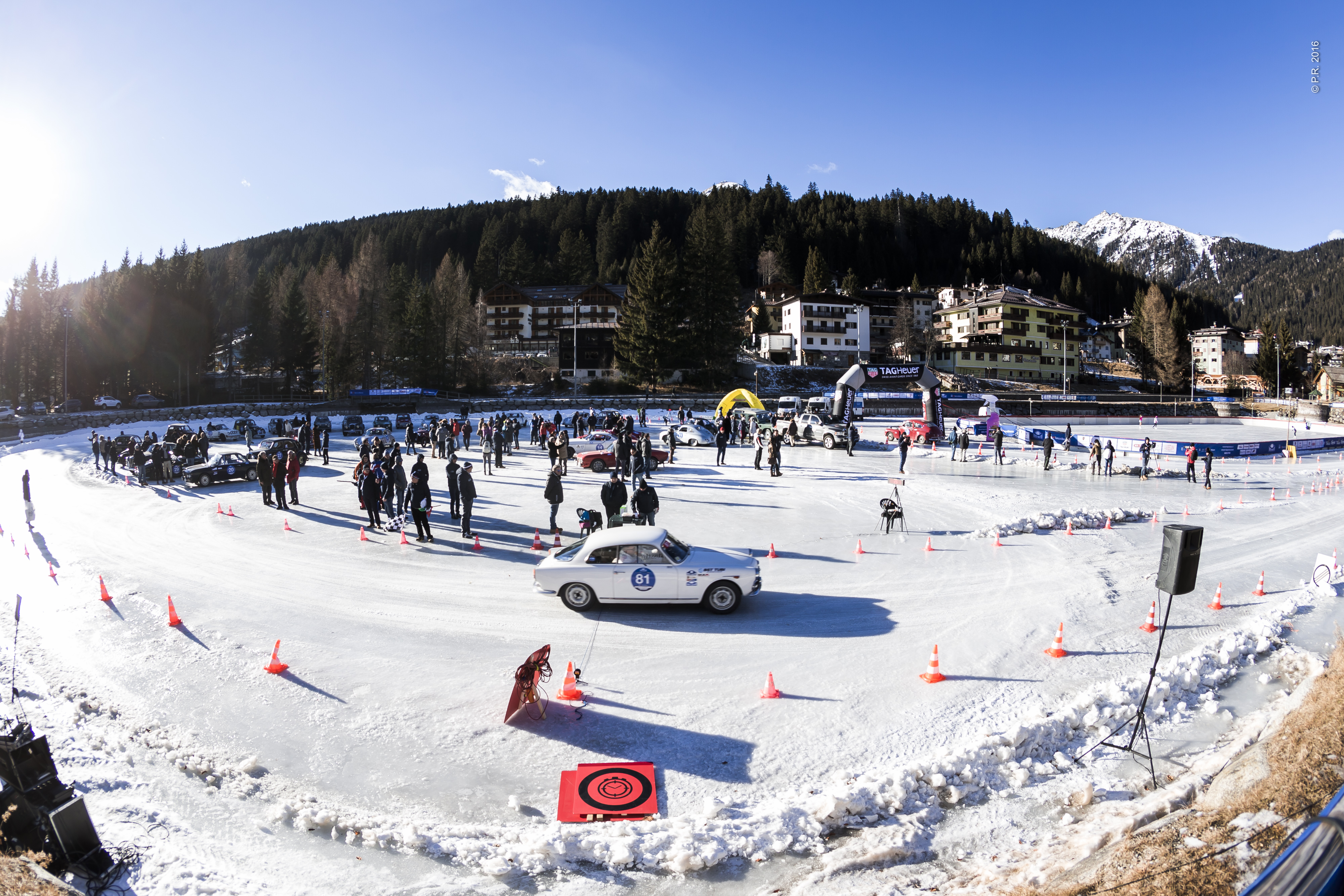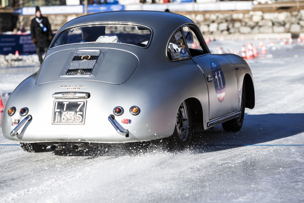 Ein echtes Spektakel waren am Samstag die Fahr-Prüfungen auf dem gefrorenen See. Hier zeigte sich die Überlegenheit des Teams Francesco und Giuseppe di Pietra mit ihrem 1938 Fiat 508 C in der Vorkriegsklasse.